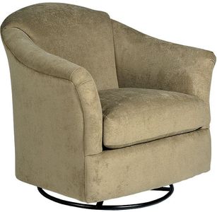 Effortlessly glide in this contemporary barrel chair. Available as a swivel chair or swivel glider, this unit has a reversible seat cushion and a slightly rounded arm with a smooth, pulled over back. The back is also slightly taller than most barrel chairs.Read More