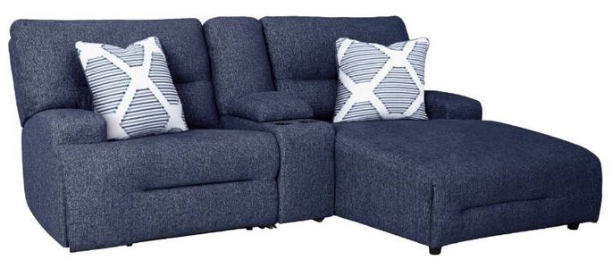 Includes left-arm facing power recliner, console with storage and right-arm facing power reclining back chaise