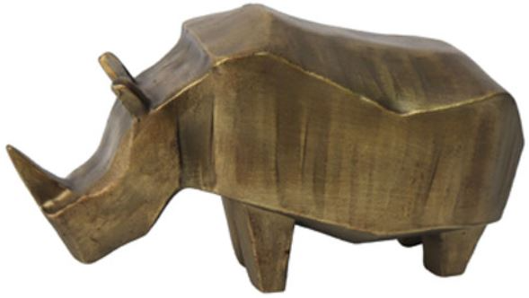 This rhino-shaped sculpture adds a touch of elegant adventure to your decor. Crafted with an antiqued goldtone finish, it’s well-suited for eclectic and contemporary spaces alike. Display it solo as a chic statement, or make it the focal point of a centerpiece arrangement.Read More