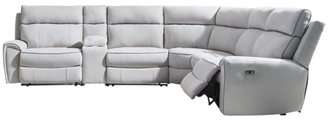 Includes 6 Modular Pieces: Left-arm facing power recliner, 2 armless chairs, console with storage, wedge and right-arm facing power recliner