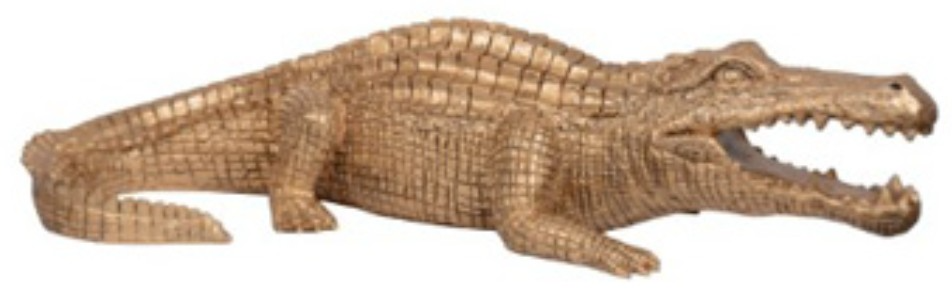 This sculpture brings a glam appeal to wild style. Luxe in an antiqued goldtone finish, the alligator-shaped art piece is a snappy addition to your office or living room decor. Its remarkable attention to detail captures the animal's likeness in decidedly contemporary fashion.Read More