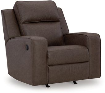Indulge your lust for comfort and love for contemporary design with this rocker recliner. Made for easy everyday living, it’s upholstered in a heavyweight padded faux leather and accented with contrast jumbo stitching for fashion-forward flair. Sleek track arms elevate the look with a touch of modern sensibility.Read More